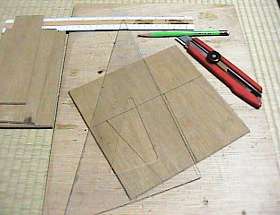 まずはベニヤ板を寸法通りに切るのが最初の仕事だ。 ベニヤ板は鋸で切っても良いのだが、今回使った 4〜5mm厚程度のものならば、カッターで少し力を入れて切れ目を入れてやるだけで 簡単に切断することができる。 ウラ面に貫通するまで、何回かに分けて切れ目をなぞって行こう。 鋸で切ると、刃の厚みがそのまま誤差につながりやすいが、カッターで切った場合は誤差が出にくいのもありがたいところだ。 但し、きっちり定規を当てて切らないと、切り口が波打ってしまうことがあるので注意しよう。 また、貫通寸前に力を入れすぎると「ササクレ」だらけになってしまうので、力加減を弱めにするか、 うまく位置を合わせて両面から切る等の工夫をしてみて欲しい。 コツがつかめるようになったら、サクサク行こう (^^) |