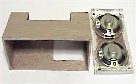 ケース各部材の貼り付け完了。 スピーカーもサランネットとアングルが付いて、だいぶそれらしくなってきたようだ。 ベニヤ板同士の貼り付けは「木工用ボンド」だけだが、それなりの強度に仕上がっている。 基本的には、貼り合わせた後ガムテープの切れ端等を使って仮止めしておくだけで良いが、 隙間ができると弱くなるので、乾いた後でもう一度隙間に木工用ボンドを充填しておこう。 十分に乾燥させた後、貼り付け面の段差をカッターやヤスリで整えておけば完璧だ。 |