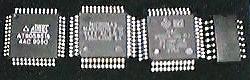 慎重に取り扱おう。 これらのLSIを基板の上に置き、慎重に位置合わせをしてから隅のピンを仮止めする。
