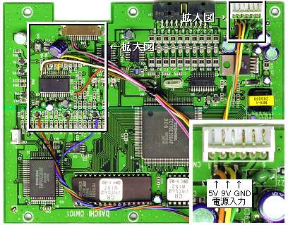 続いて電源関係。 電源コネクタのすぐそばにノイズフィルタが実装してあるので、今回はその端子に 配線をハンダ付けすることにした。 ここは配線が密集している訳ではないので、比較的楽なはずだ。