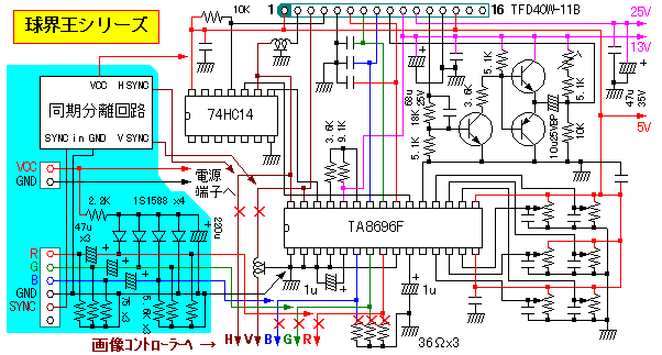 | 備考 | 基板はどちらもインテリジェント構成の一枚物。 改造で映像/同期信号入力可能となるが、液晶の走査が自走しないので PLL内蔵同期分離回路が必要。 |
