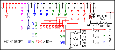 さて、映像回路基板の入力ソケットからの信号経路をざっと調査したのが右の図だ。