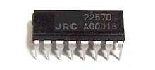 ▼ NJM2257D ▼ (新日本無線製 AFC付同期分離回路 16P-DIP) 水平走査周波数の 32倍のセラロックを使用し、安定な水平同期信号が得られる同期分離 IC。 1/2fHキラーを内蔵しているため、垂直同期期間付近の「等価パルス」に水平同期が引きずられる心配がないという利点もある。 同種のICに NJM2229Sというのもあってこちらの方が入手性が良いようだが、1/2fHキラーを内蔵していないため、 そのまま使うと画面上部に歪みが発生してしまうので要注意だ。 \380 (若松通商) |