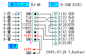 今回はRS-232Cレベルコンバータを使わず、カスタマーディスプレイの信号線を PICマイコンのポートにインターフェースしている。