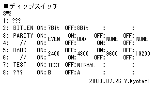 ということで、DIPスイッチでの通信パラメータ設定法は難なく判明。 RS232CレベルコンバータIC NJU6402Bからコネクタへの配線を「さらっ」