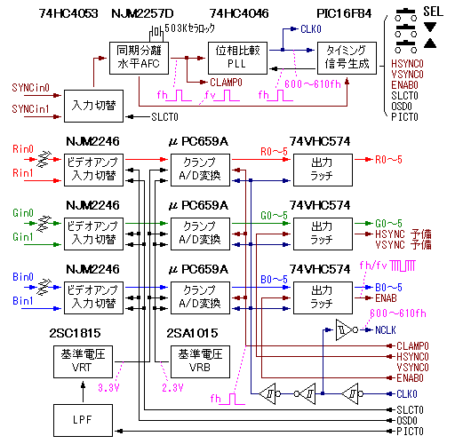 ※この信号を基準にして PLLがドットクロックの周波数と位相を合わせ込んでくれる。・ H-SYNC ・ V-SYNC ・ ENAB ・ 入力切替信号 ・ 画像調整信号 ・ OSD信号