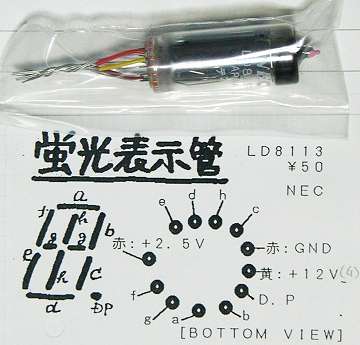 話を元に戻そう。 今回入手した蛍光表示管だが、NEC謹製 LD8113という型番で、‘田’の字型セグメント+小数点が表示可能なようだ。
