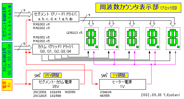 5本ダイナミック点灯で使用し、各セグメントおよびグリッドのドライブ回路と、ローカル電源を配置している。