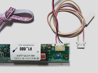 そして右上は、バックライト用コネクタを手近なインバータに嵌合させてみたところ。 どうやら 高圧側と低圧側が入れ替わっている ような感じだ (^^; リード線の材質やパネル本体へのマウント方法が違うっぽいので、入れ替わった状態のままうっかり使うと、どこかで 放電しそうな予感 がするんだけど・・・ 早めにインバータ側に合わせてピンを差し替えておくのが吉かな。 |