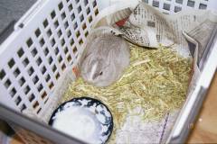 会社の同僚宅からやって来たモリ君。 洗濯かごに入れられてご到着〜