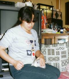 意外とじっとしていてくれるモリ君。 気のせいかもしれないが、私が抱き上げようとすると 早々と逃げ出してしまう・・・・ うーん、何でやろ??