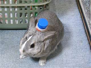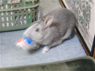 瓶を転がし、あっちへこっちへ・・・・ しばらくすると、底をかじってみたりと、なかなか飽きない様子。 |