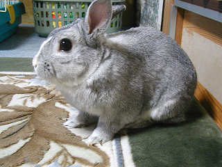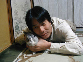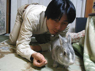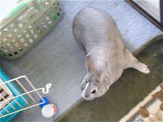 うしろから、そ〜っと近付いて抱きかかえようとするが、モリ君もそうはされまいと逃げる体制に・・・ デジカメを構える嫁さんも、なかなかタイミングが合わずに不満たらたら。 |