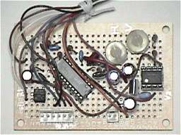 下の写真は別の機種に使うために製作した同期分離回路の基板だが、12Vから 5Vにドロップさせるための三端子レギュレータを