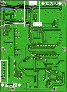 今回は基板のオモテ面には手を触れる必要はなく、改造は基板のウラ面のみで完結する。