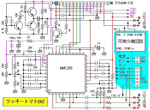 使用ICの違い以外にも細部で多少の違いが見られるようだ。 但し最終的には RGB映像信号を注入する部分以外は