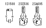 ちなみに、今回使用した2SC536は文字を読める面を正面に向けたと