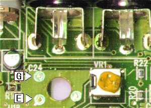 Q4のコレクタから R23にパターが伸びているので、R23の上側でリード線をハンダ付けする。